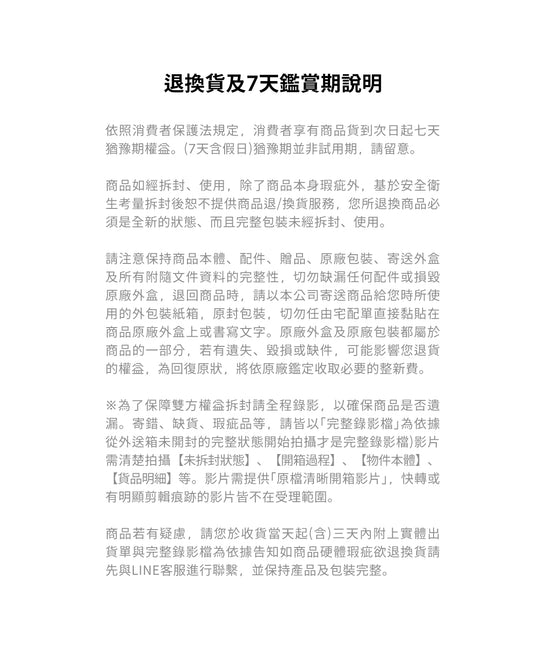 3. 商品到貨時間會因原物料,氣候,疫情,航班延誤等因素影響,正確發貨時間請關注物流配送資訊或與Line客服確認。