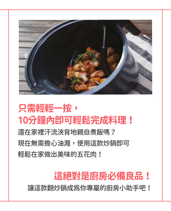 - 當翻炒鍋正在運行時避免接觸鍋子。(有燙傷的風險。)