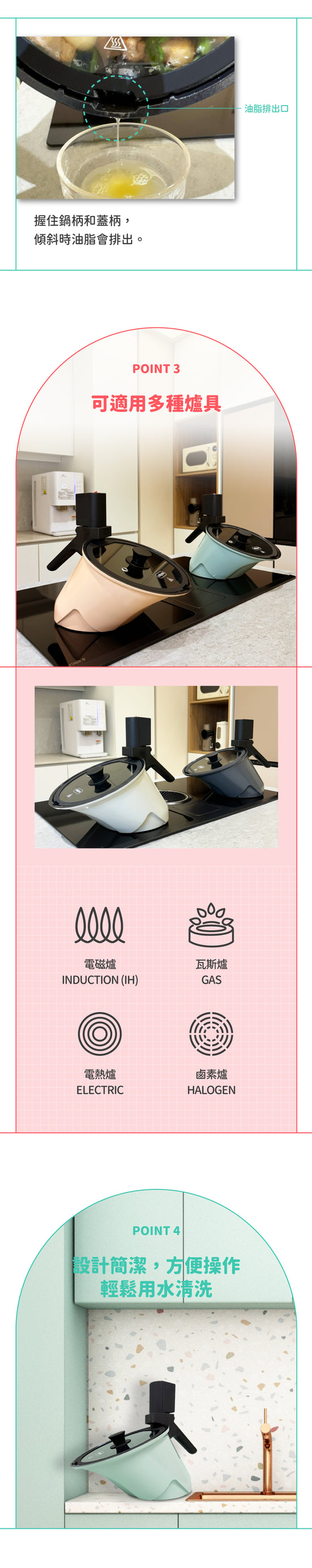 - 請勿在地面上拖動鍋具,地面可能會被刮傷。